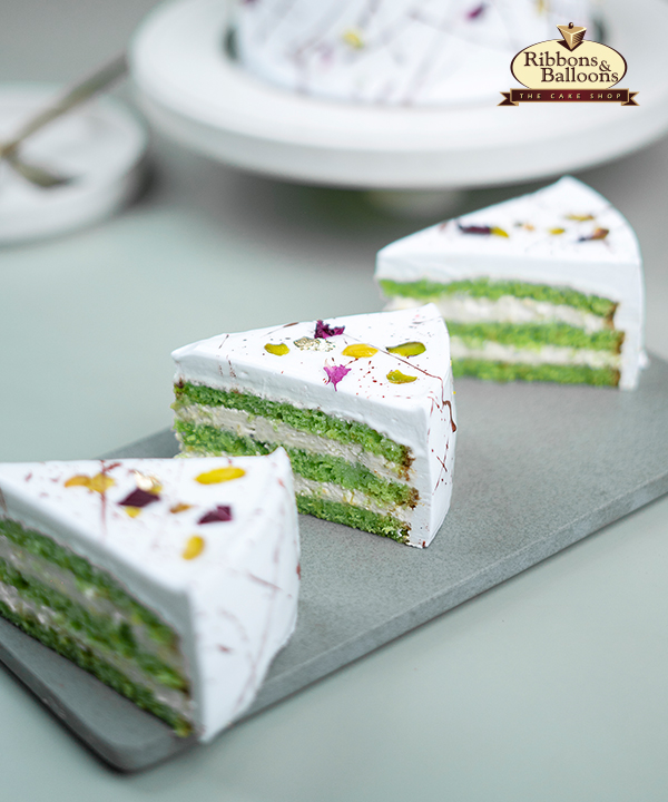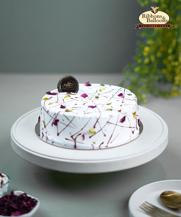Pista Sponge, Falooda, Rabdi, and whipped cream unite in this exquisite Rajbhog Cake, topped with the elegance of rose petals and Pista flakes.